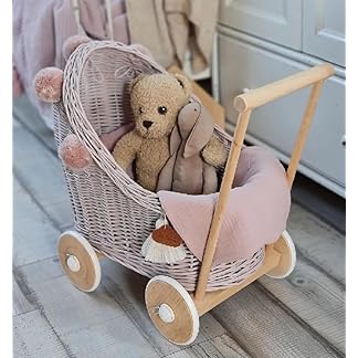 €59,99Produkt kaufenKorb Puppenwagen aus Weide, mit Bettwäsche, Korbpuppenwagen, Hellrosa, rosa, mit Pompoms
