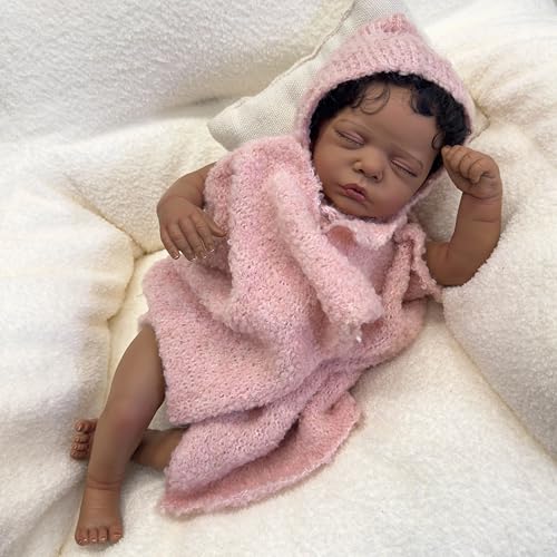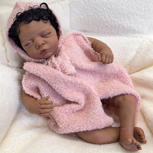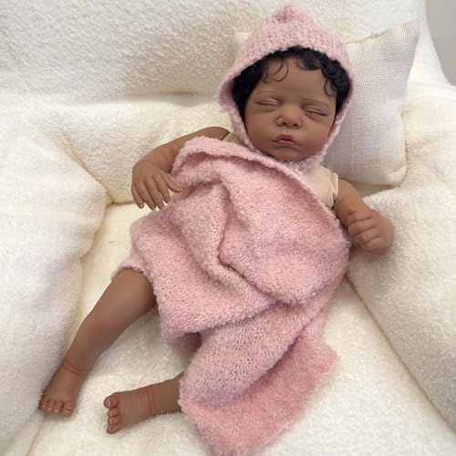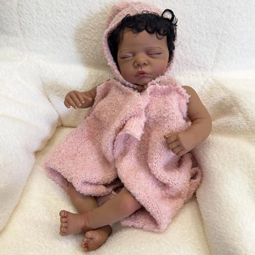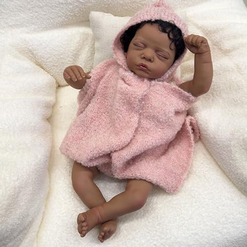 18 Zoll Reborn Baby Puppe Dunkle Haut Augen Schließen Neugeborene Puppe 45cm Lebensecht Kuscheliges Baby Afroamerikanisch Kleinkind Puppe Geburtstag Wei18 Zoll Reborn Baby Puppe Dunklhnachten Geschenk