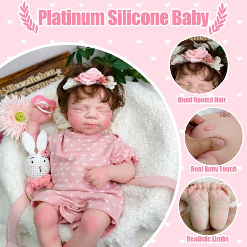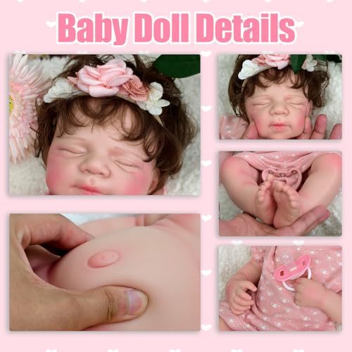Ultrarealistisches Reborn-Baby – Diese 47 cm (3,3 kg) große Babypuppe allesamt Platinsilikon ist so gefertigt, dass sie jedes Detail eines echten schlafenden Babys nachahmt, von implantierten Wimpern bis hin zu handgemalten Adern von professionellen Künstlern. Ihre weiche Haptik und ihr Gewicht simulieren das Kuscheln eines Neugeborenen.