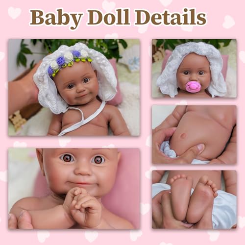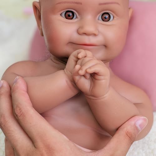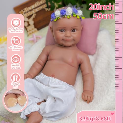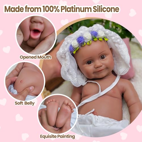 Realistischer Realismus: Dieses 50 cm große und 3,9 kg schwere, lebensechte Reborn-Puppenmädchen aus Silikon ist bis ins kleinste Detail präzise eingefangen. Von ihrem süßen, offenen Mund bis hin zu ihrer handbemalten Hautstruktur spiegelt sie den Charme eines echten Neugeborenen wider. Ihr schwarzer Hautton macht sie zu einer phantastisch realistischen und bezaubernden Appendix Ihrer Sammlung.