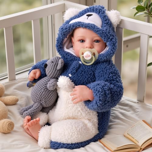 🐋🐋Bezauberndes Design: Diese Reborn-Puppe trägt ein bezauberndes Outfit mit blauem Bärenmotiv. Das weiche Plüschmaterial und die süße Kapuze mit Bärengesicht und flauschigen Ohren kreieren sie unwiderstehlich süß – perfekt sondern Sammler oder wie tröstende Begleitung.