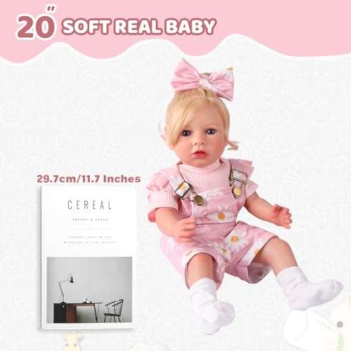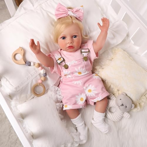 🍭 Verspieltes Design: Die reborn baby trägt einen Overall mit rosa Gänseblümchenmuster. Die erfrischenden Farben und das leuchtende Gänseblümchenmuster sorgen für eine lebendige Atmosphäre. Die Schleife auf ihrem Kopf harmoniert perfekt mit dem Overall, und ihr verspieltes und bezauberndes Design erobert sofort die Herzen der Betrachter.
