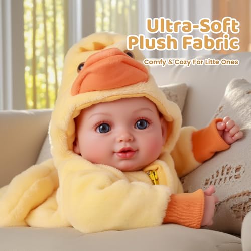 BABESIDE Reborn Puppe 35 cm, Realistische Babypuppe mit Weichem Körper und Zubehör, Babypuppe mit Entchen-Outfit, Geschenk für Mädchen ab 3 Jahren, Rollenspiel & Sammler
