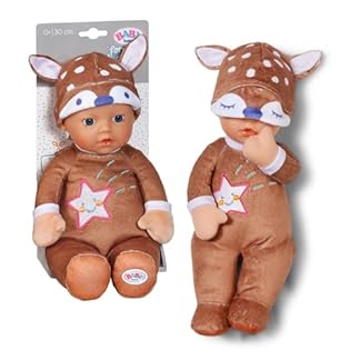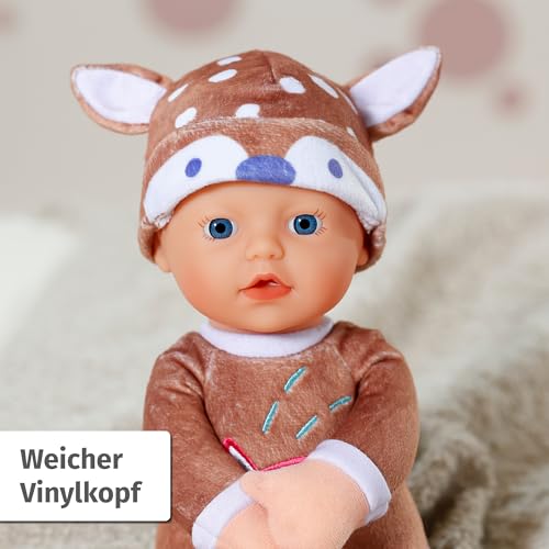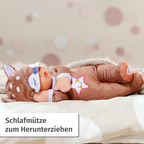 BABY born for Babies Sleepy REH, weiche 30cm große Puppe aus Stoff mit Mützchen im REH-Design mit integrierter Rassel für Neugeborene, 836552 Zapf Creation, Braun Or Grau
