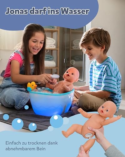 MIT 10 SPIELFUNKTIONEN – Jonas kann trinken, weinen, essen, schlafen, in die Windel machen & aufs Töpfchen gehen. Zusätzlich ist er komplett badebar & super beweglich.