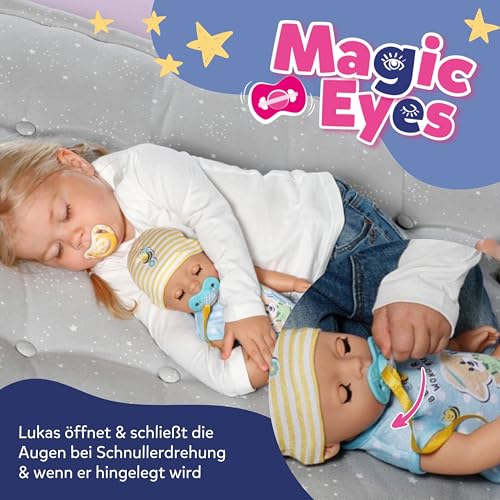 MAGIC EYES – Auf Grund der Tatsache eine einfache Schnullerdrehung an seinem Body schließt & öffnet Lukas seine Augen auf magische Weise.