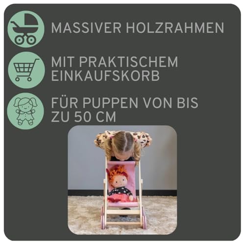 STABILER PUPPENBUGGY AUS HOLZ: Perfekt für Puppen bis 50 cm.