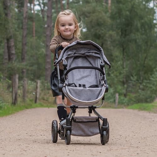 Bandits & Angels Puppenwagen Grau Modern Angel 2in1 Grau ab 3 Jahren – Puppenwagen – Für Mädchen – Verstellbare Schiebestange 48-81 cm – Komplett zusammenklappbar – Mit Einkaufskorb