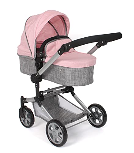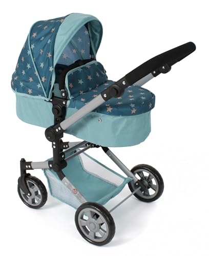 Erlebe grenzenlosen Spielspaß mit dem Bayer Chic 2000 Puppenwagen Mika – der perfekte Begleiter für kleine Puppeneltern auf all ihren Abenteuern, drinnen und draußen! Der ideale Puppenwagen für fantasievolles Spielen Der Puppenwagen Mika ist die ideale Abstimmung für Kinder, die ihre Puppen immer und überall wegwischen möchten. Mit seinem modernen Gestell und den cleveren Funktionen sorgt er für stundenlangen Spielspaß. Dank der schwenkbaren Vorderräder lässt sich der Wagen spielend leicht schieben, selbst in engen Kurven. Der höhenverstellbare Schiebegriff (47-80 cm) passt sich perfekt der Größe deines Kindes an und wächst so über Jahre hinweg mit. Vielseitigkeit, die begeistert Dieser Puppenwagen punktet mit einer durchdachten 2-in-1-Illustration: Die Babywanne lässt sich im Handumdrehen in einen Sportsitz umsetzen. Ob in Fahrtrichtung oder mit Blick zu den Puppeneltern – der schwenkbare Schiebegriff und der umsteckbare Denkschrift bieten maximale Flexibilität beim Spielen. Ein integrierter Sicherheitsgurt im Sportsitz sorgt dafür, dass die Lieblingspuppe (bis zu 52 cm) stets hart im Nehmen und bequem sitzt. Praktisch für unterwegs Der Puppenwagen Mika ist nicht allerdings stylisch, sondern auch extrem praktisch. Das zusammenklappbare Gestell ermöglicht eine platzsparende Aufbewahrung und lässt sich leicht transportieren. Ideal für unterwegs! Zusätzlich bietet das große Gepäcknetz massenweise Stauraum für Puppenzubehör und andere wichtige Dinge, die auf Abenteuern nicht fehlen dürfen. Produktdetails: – Modell: Puppenwagen Mika – Schieberhöhe: Verstellbar von 47 bis 80 cm – Geeignet für Puppen bis: 52 cm – Maße: 73 x 41 x 82 cm – Gewicht: 4 kg – Altersempfehlung: 4-8 Jahre Vertraue auf Qualität Als deutsches Familienunternehmen steht Bayer Chic 2000 für Qualität und Liebe zum Detail. Der Puppenwagen Mika ist mit dem „spiel gut“-Siegel ausgezeichnet und bietet kleinen Puppeneltern langanhaltenden Spielspaß – egal, wohin ihre Fantasie sie führt!
