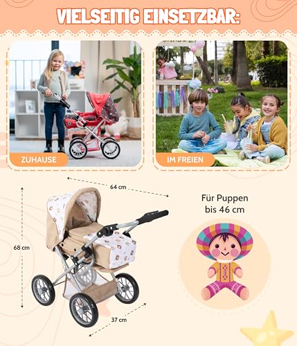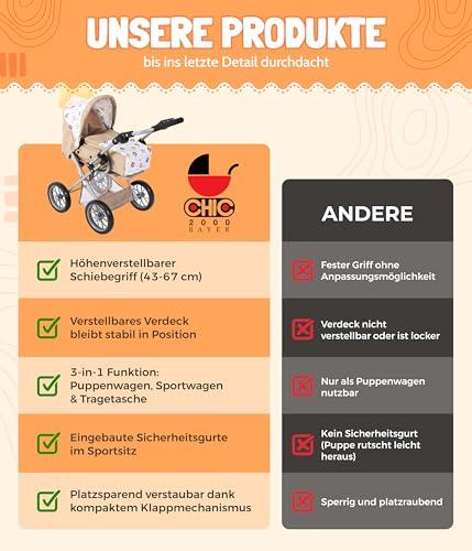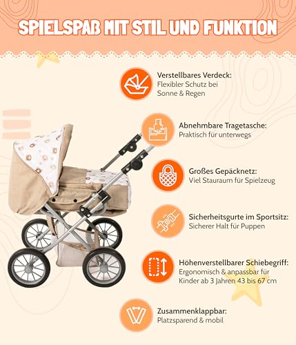 🌟 GRENZENLOSER SPIELSPASS: Der Puppenwagen Leni bietet drei Spielmodi: traditioneller Kinderwagen, Sportwagen und Soft-Tragetasche. Für fantasievolles Spielen und wertvolle Erinnerungen.