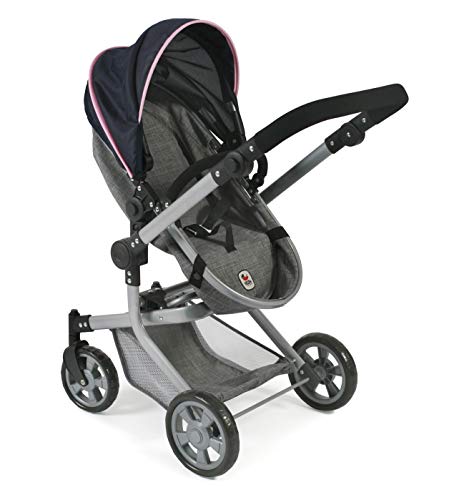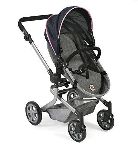 Bayer Chic 2000 – 59526 – Puppenwagen Mika, 2in1 Kombipuppenwagen für Kinder von 4 bis 8 Jahren, Melange grau-Navy, 47cm-80cm