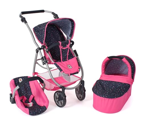 Bayer Chic 2000-640-84 Puppenwagen Emotion All In 2.0-3in1 Puppenwagen-Set bestehend aus Babywanne, Sportsitz und Autositz, Konfetti, pink
