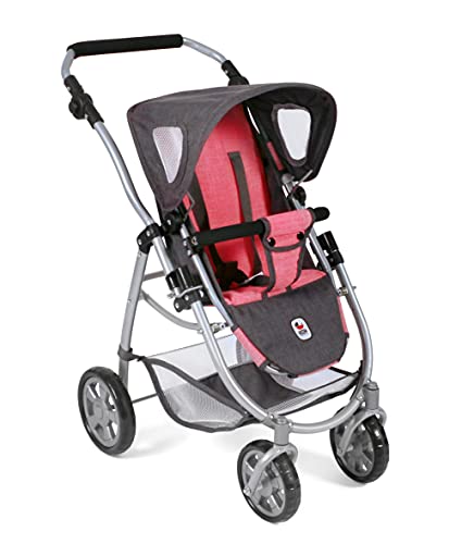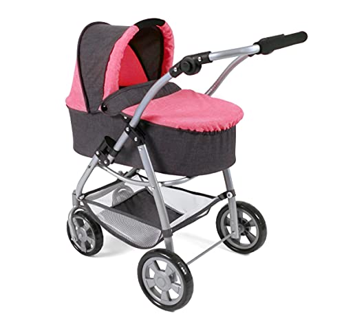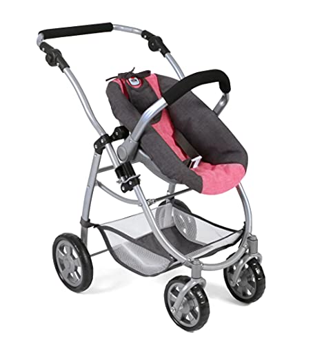 Bayer Chic 2000 Emotion All In, 3in1 Puppenwagen-Set bestehend aus Babywanne, Sportsitz und Autositz, 637-41, Melange Anthrazit-pink