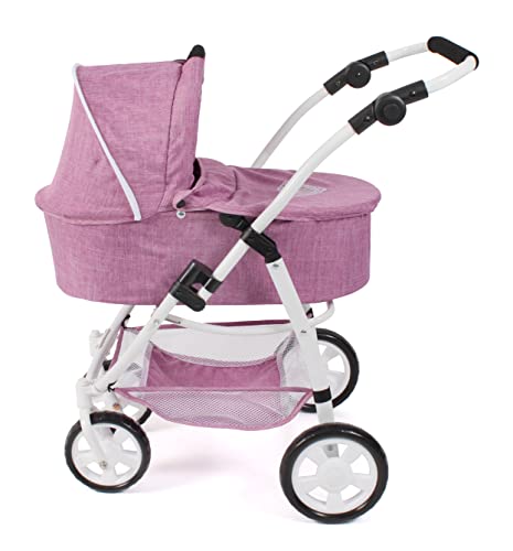 Bayer Chic 2000 – Puppenwagen Emotion All In, 3in1 Puppenwagen-Set bestehend aus Babywanne, Sportsitz und Autositz, Jeans pink