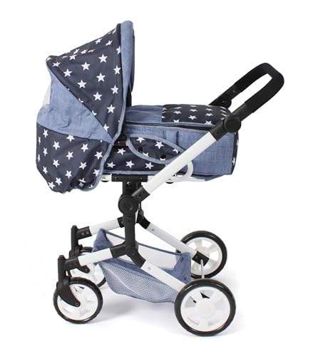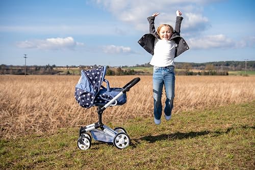 Bayer Chic 2000 – Puppenwagen Jara, 2in1 Kombipuppenwagen mit herausnehmbarer Tragetasche, Puppenkinderwagen für Kinder von 4 bis 8 Jahren, Sternchen Navy