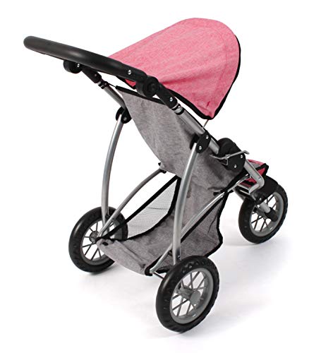 Bayer Chic 2000 – Puppenwagen Leon, Jogging Buggy, Puppenjogger für Kinder von 4 bis 8 Jahren, Melange grau, pink, 75 x 40 x 73.5 cm