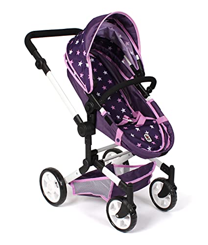 Bayer Chic 2000 – Puppenwagen Linus, 3in1 Kombipuppenwagen für Kinder von 4 bis 8 Jahren, Puppenwagen-Set, 592-71, Stars lila