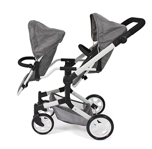 Bayer Chic 2000 – Puppenwagen Linus Duo, Zwillingspuppenwagen für Kinder von 4 bis 8 Jahren, Jeans grau, 690-76, 82×41.5×79 cm