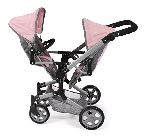 Bayer Chic 2000 – Puppenwagen Linus Duo, Zwillingspuppenwagen für Kinder von 4 bis 8 Jahren, Melange grau, rosa, 690-15