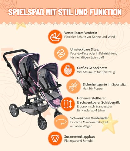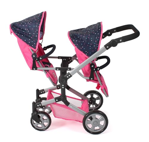 Bayer Chic 2000 – Puppenwagen Linus Duo, Zwillingspuppenwagen für Kinder von 4 bis 8 Jahren, Tandempuppenwagen, Konfetti, pink, 690-84