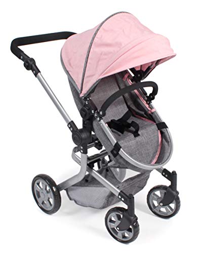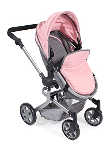 Bayer Chic 2000 – Puppenwagen Mika, 2in1 Kombipuppenwagen für Kinder von 4 bis 8 Jahren, Melange grau-rosa, 73 x 41 x 82 cm