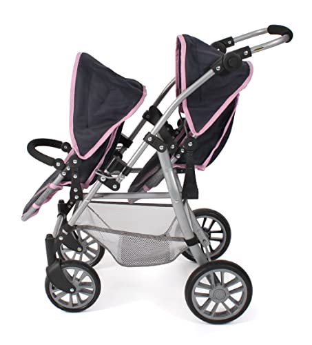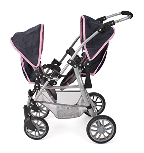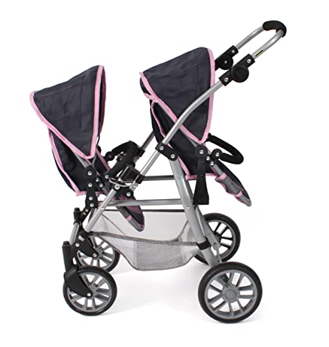 Bayer Chic 2000 – Puppenwagen Twinny, Zwillingspuppenwagen für Zwei Puppen, Zwillingsbuggy für Kinder von 4 bis 8 Jahren, Melange grau-Navy