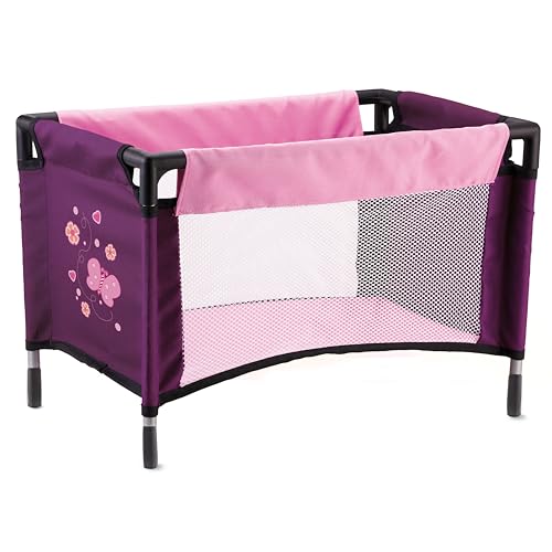 Bayer Design 13057AB Puppenwagen Trendy, mit Tasche, Puppenbett, höhenverstellbarer Griff, integrierter Korb, faltbar, Pflaume