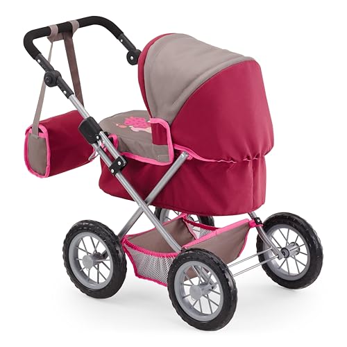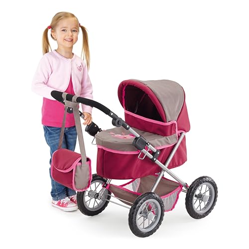 Bayer Design 13078AA Puppenwagen Trendy, höhenverstellbar, zusammenklappbar, mit Umhängetasche und integriertem Einkaufskorb, 67 x 41 x 67 cm, Grau/Pink