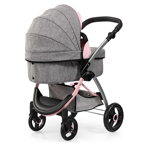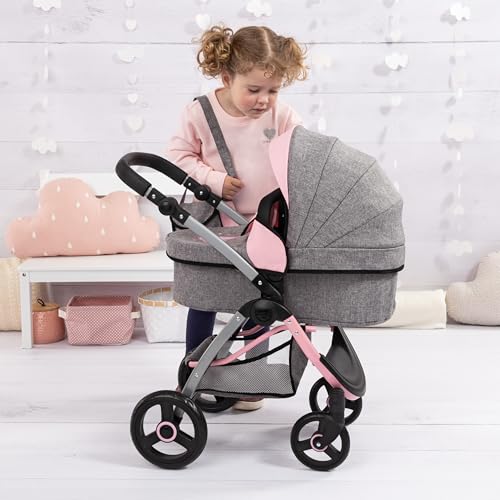 VERSTELLBARER GRIFF: Kombi-Puppenwagen im modernen Design mit höhenverstellbarem Griff für Puppen bis 46cm