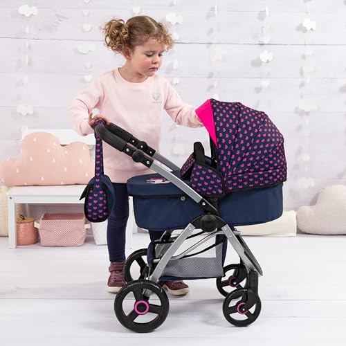 VERSTELLBARER GRIFF: Kombi-Puppenwagen im modernen Design mit höhenverstellbarem Griff für Puppen bis 46cm