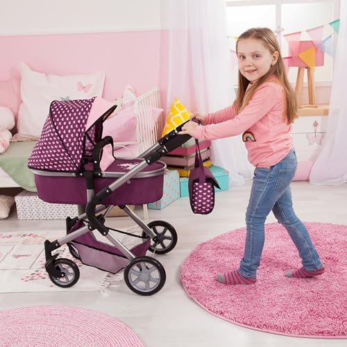 Bayer Design 18137AA City Neo Kombi Puppenwagen mit Wickeltasche, umwandelbar in einen Sportwagen, höhenverstellbar, faltbar, Pflaume, rosa, Einhorn, 52cm