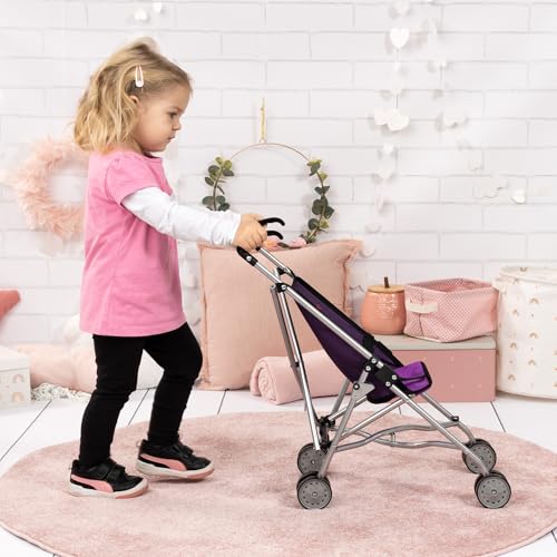 Bayer Design 30112AA – Puppen Buggy, zusammenklappbar, mit Doppelrädern, lila, 50 x 27.5 x 55 cm