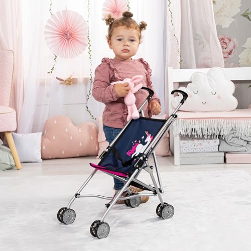 Bayer Design 30154AA Puppenbuggy, Puppenwagen, Doppelräder, Gurt, leicht faltbar, aus Metall, Blau, Rosa
