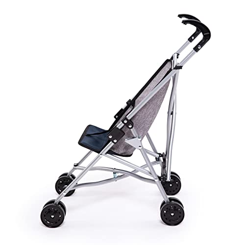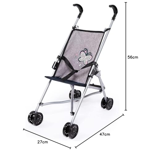 Bayer Design 30527AA Puppenbuggy, zusammenklappbar, Doppelräder, Sicherheitsgurt, aus Metall, Jeans-grau, Rosa