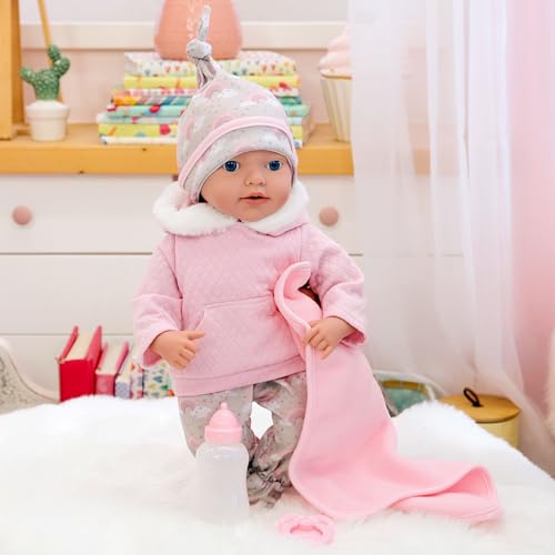 Bayer Design 93827AC Reborn Babypuppe, lebensecht, realistisch, Schnuller, Flasche, Decke, 38 cm