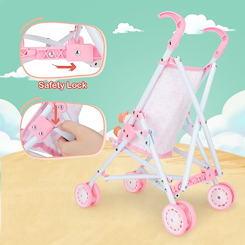 Zusammenklappbarer Puppenkinderwagen – Der Spielzeugkinderwagen besteht aus weichem, waschbarem Stoff, der leicht zu reinigen und zu verstauen ist, und verfügt über einen Sicherheitsgurt und einen leicht zu greifenden Griff speziell für kleine Hände. Kinderwagen können auch als Rollatoren für Kleinkinder verwendet werden, um ihre ersten Schritte zu machen.