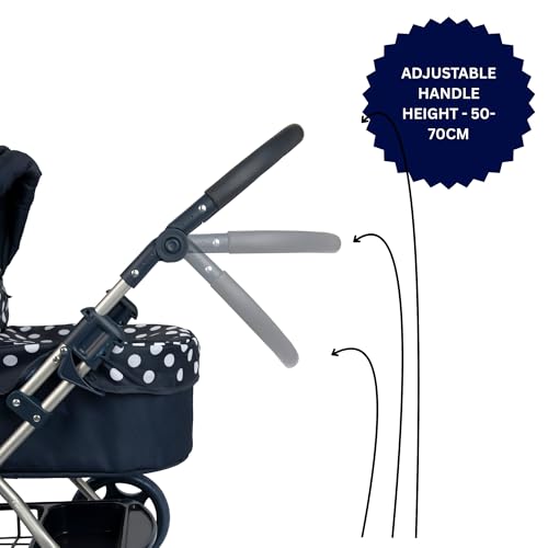 🛒 REALISTISCHER MARINEBLAUER PUPPENWAGEN FÜR ROLLENSPIEL – Der Dolly Tots Cherish Puppenwagen in elegantem Marineblau und Weiß ist das perfekte Zubehör an Stelle kleine Puppeneltern. Sein modernes Design verleiht dem Rollenspiel einen stilvollen Anflug und fördert gleichzeitig fantasievolles Geschichtenerzählen, Empathie und Fürsorgefähigkeiten bei Kindern ab 3 Jahren.