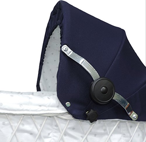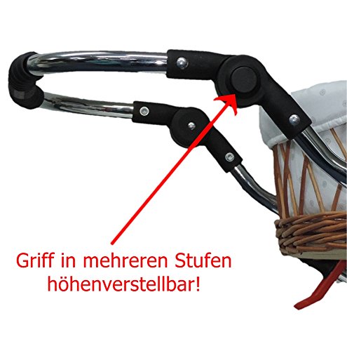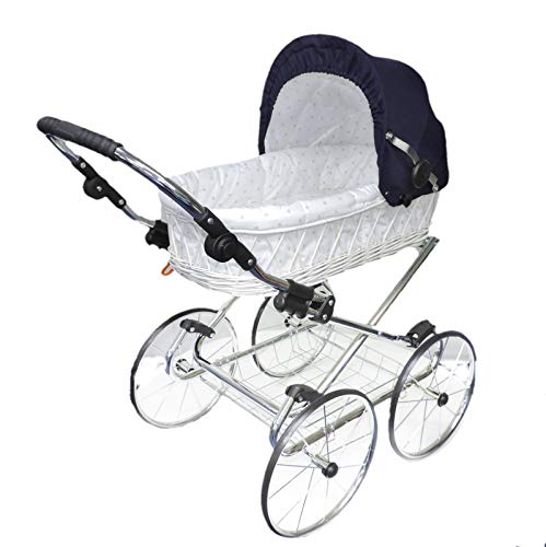 EICHHORN Kinderwagen Weidenkorb Puppenwagen Retro-Spielzeugklassiker (Korb Weiß, Stoff Marineblau)