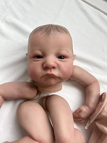 Enjoy with Love 19inch bereits gemalte Reborn Puppe Teile Levi erwachen lebensechte Baby 3D Malerei mit sichtbaren Adern Tuch Körper enthalten (Blue Eyes)