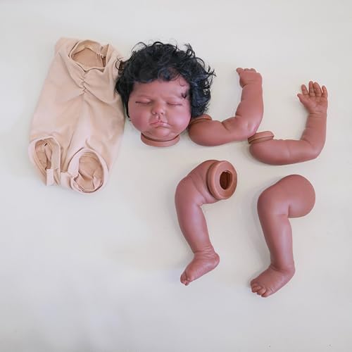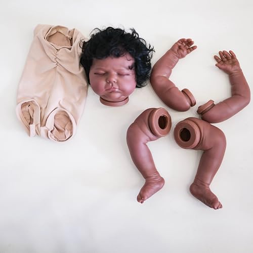 Enjoy with Love Neue 19inch Clearance Reborn Puppe Tessa schläft in dunkler Haut Lebensechte Neugeborene Baby Puppe Hat Puppe Kit lackiert Unfinished Puppe Teile