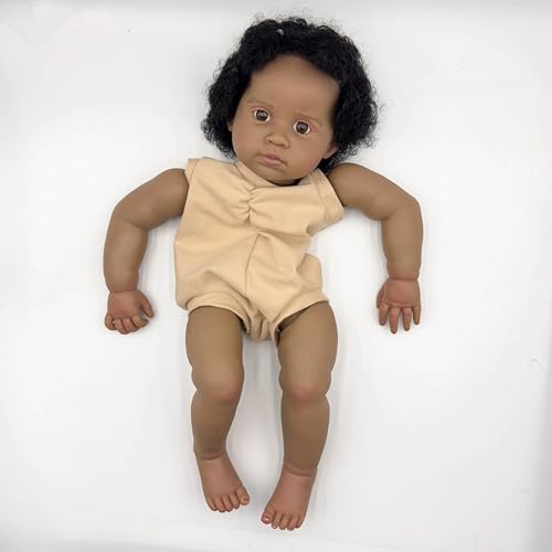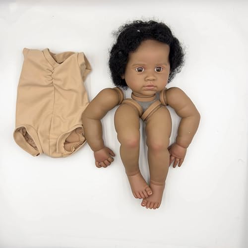Enjoy with Love Neue 22inch Lifelike Unfinished Dark Skin Reborn Puppe Kit bemalte Puppe Kit Puppe Teile mit Hand Wurzelhaar
