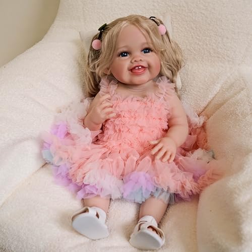 Enjoy with Love Neue 24 Zoll Devi Reborn Baby Puppe Kleinkind Neugeborene Puppe Prinzessin Mädchen lebhafte weiche Berührung 3D Skin Art Puppe mit Hand Wurzelhaar