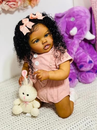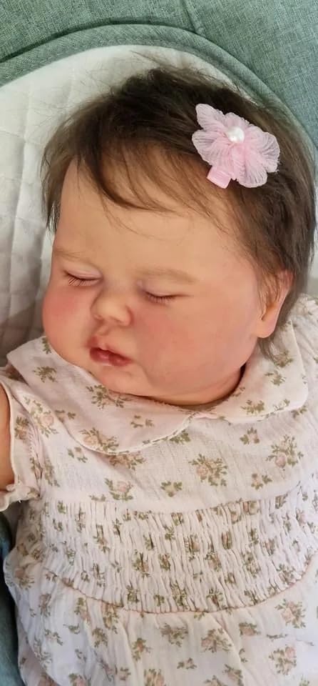 Enjoy with Love Neue 24Inch Schlafpuppe im weichen Tuch Körper Lebensechte Gurke Reborn Kleinkind Hand verwurzeltes Haar Kuschelige Baby Mädchen Puppe Baby