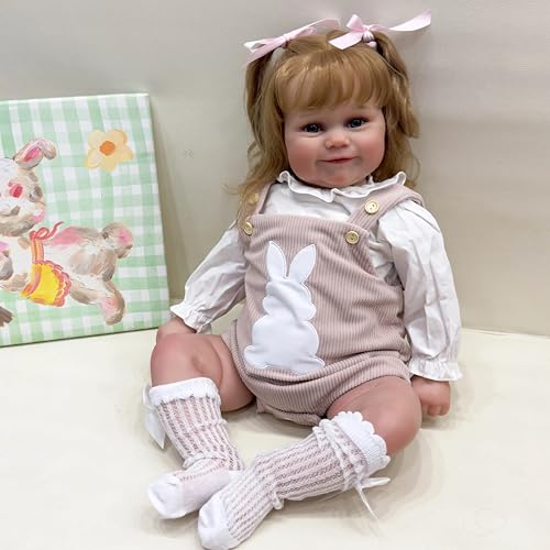 Enjoy with Love Neue 60CM Maddie Riesige Größe Baby Reborn Kleinkind Beliebte Mädchen Puppe mit Wurzelbraunem Haar Weiche Kuschelkörper Hochwertige Puppe