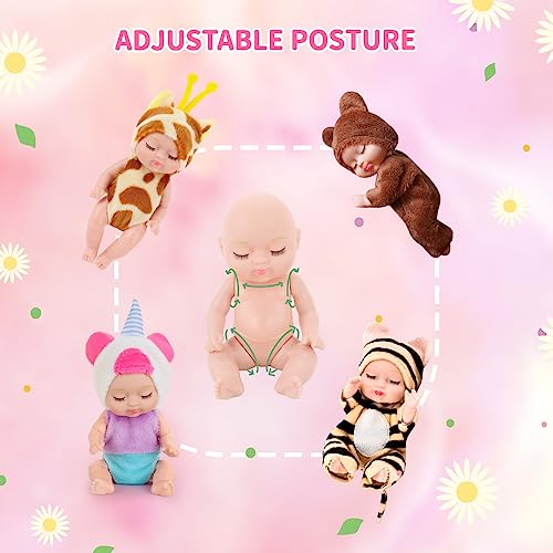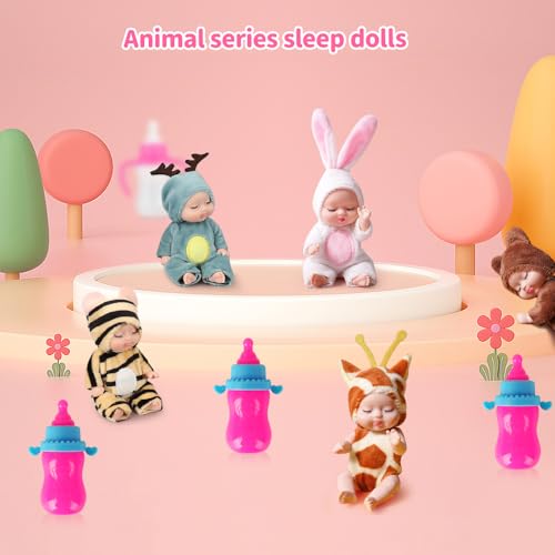 【Einfach zu verwenden】Rüsten Sie Ihre Mini Reborn Puppe mit allen Accessoires und Kleidungsstücken ganz. Die Schlafpuppen der Tierserie bestehen ganz sicherem PVC-Material, haben ein kurzes Plüschdesign und sind hautfreundlich, sodass Babys beruhigter spielen können. Ihr Spross kann die Kleidung der Puppe nach Belieben abwandeln. Projizieren Sie Ihre wiedergeborene Minipuppe stilvoll.