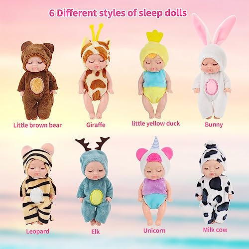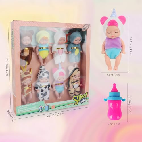 Fiotha 8 Stück Mini Reborn Puppen, Babypuppe, Mini Babypuppe Mit 8 Flasche, Newborn Reborn Baby, Minis Puppen, Realistische Babypuppes, Weicher Körper, Puppenspielzeug für Mädchen, Jungen