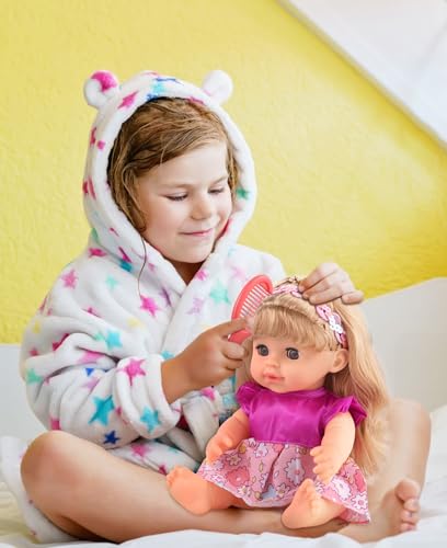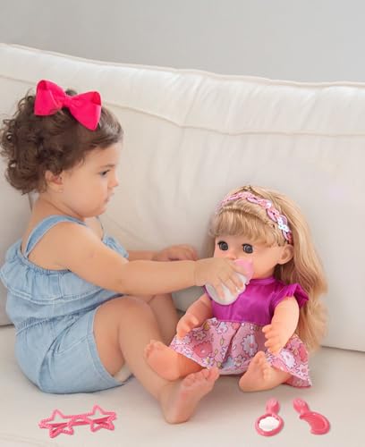 GAGAKU Puppe mit Haaren, 30cm Baby Puppe für Kinder ab 1 2 3 4 5 6 Jahre, Baby Puppen mit Langen Haaren zum Kämmen, Spielzeug Puppe mit Puppen Zubehör: Kleidung, Windeln, Flasche