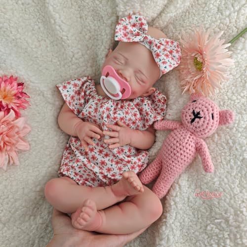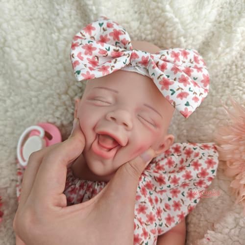 Lebensechte Silikon-Babypuppe für Mädchen: Wir repräsentieren unsere 44 cm große Reborn-Babypuppe aus Silikon. Mit einem Gewicht von 2,76 kg hat diese lebensechte schlafende Neugeborenen-Mädchenpuppe geschlossene Augen und einen offenen Mund und ähnelt damit perfekt einem echten schlafenden Baby.
