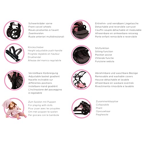 Götz 3403367 Puppenwagen 2 in 1 Soft Mood – passend für alle Götz Puppen bis 50 cm – Griffhöhe verstellbar von 58-80 cm