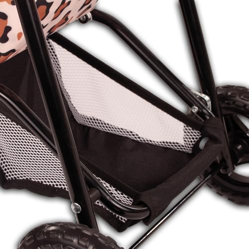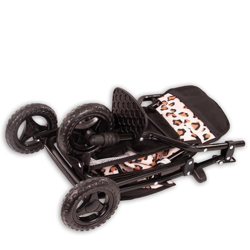 Dieser schicke Puppenbuggy in edlem Tiger-Muster ist unser kleinstes Modell sämtliche der Buggy-Sukzession. Er hat einen Sonnenschutz und einen Softgriff der das Schieben schon für die kleinen Puppeneltern angenehm macht. Unterhalb ist ein Einkaufsnetz im Rahmen, damit alles was benötigt wird verstaut werden kann. Aktuell zugegeben noch die Puppe hineinsetzen und es kann los gehen.